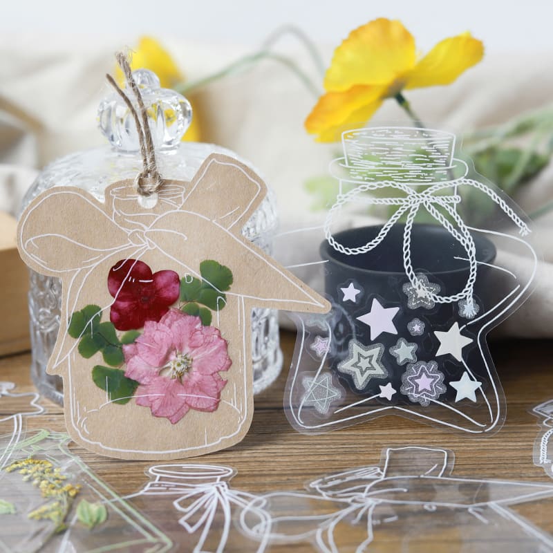 Step into a miniature world captured in a bottle with the World in a Bottle Sticker Pack. Featuring five beautifully detailed designs that evoke the serenity of nature, these stickers transport your journal or scrapbook to a tranquil world of flowers, plants, and bottles. Each sticker is made with high-quality PET material, ensuring durability and easy application.